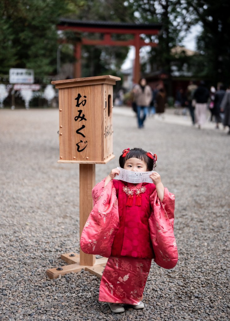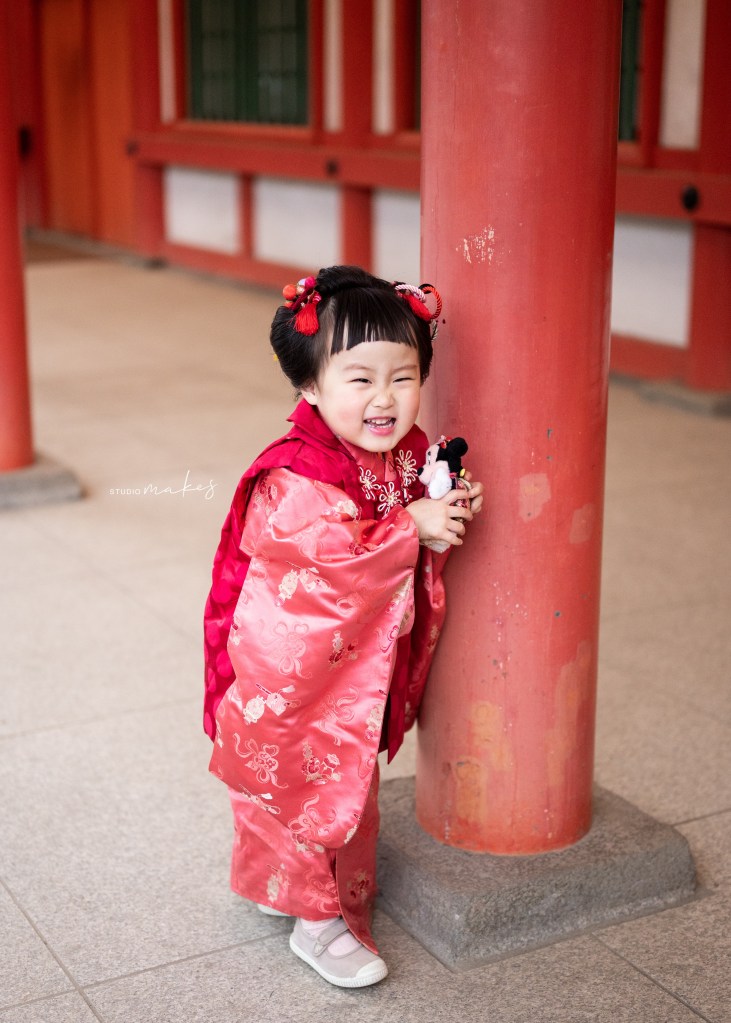 大宮氷川神社での撮影したお写真をご紹介させていただきます。3歳の女の子赤い着物がとても似合っていますね!